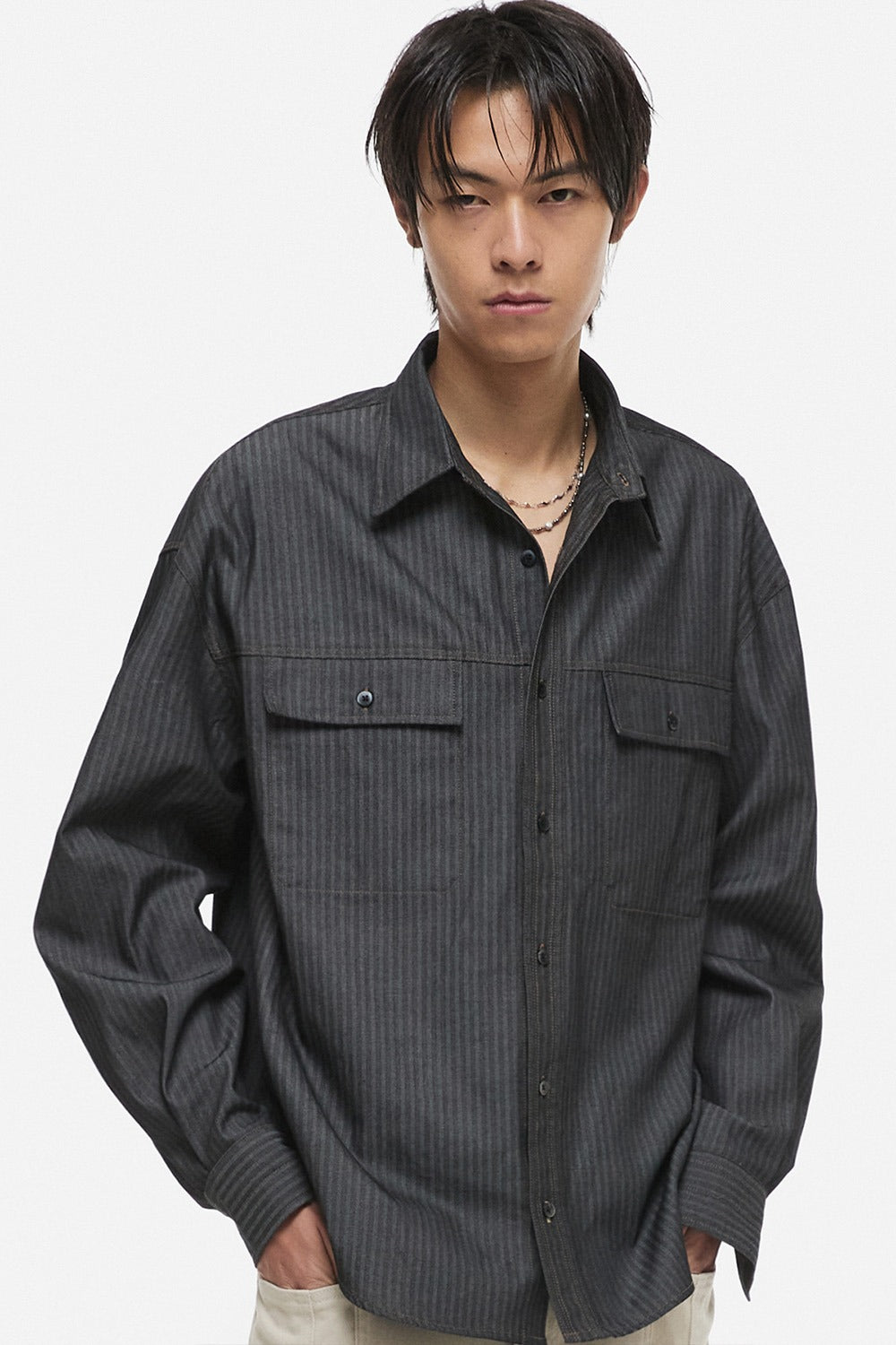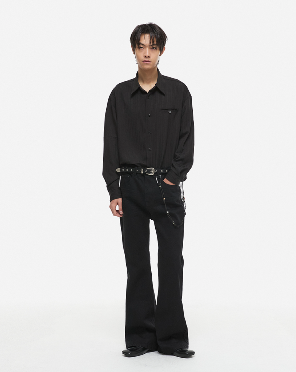 Striped Denim Shirt Black