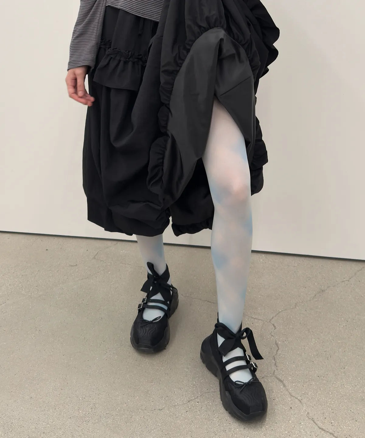 Ruffled Stripe Skirt [Charcoal]