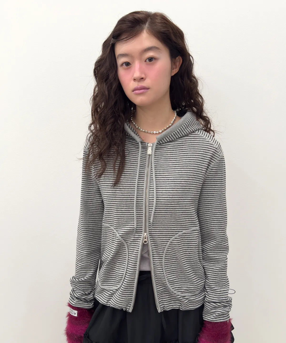 Striped Pocket Zip Hoodie [Gray]