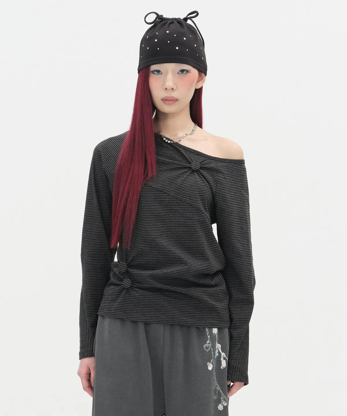 Girl Hotfix Washed Top [Charcoal]