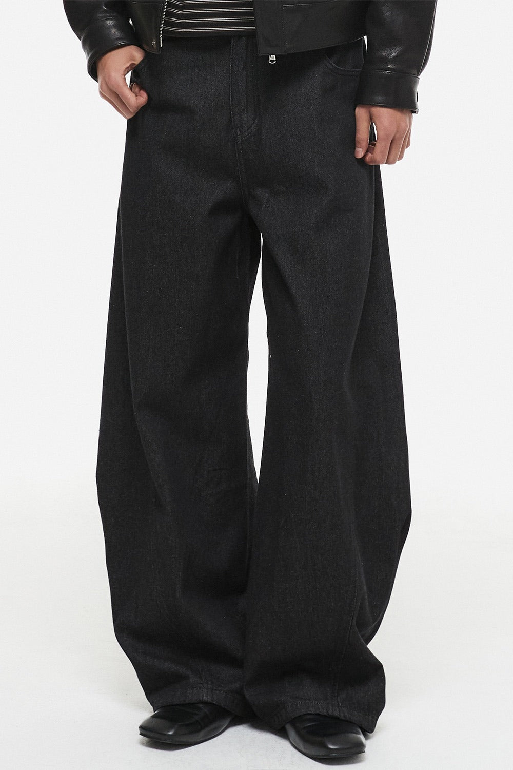 Curved Denim Pants Raw Black