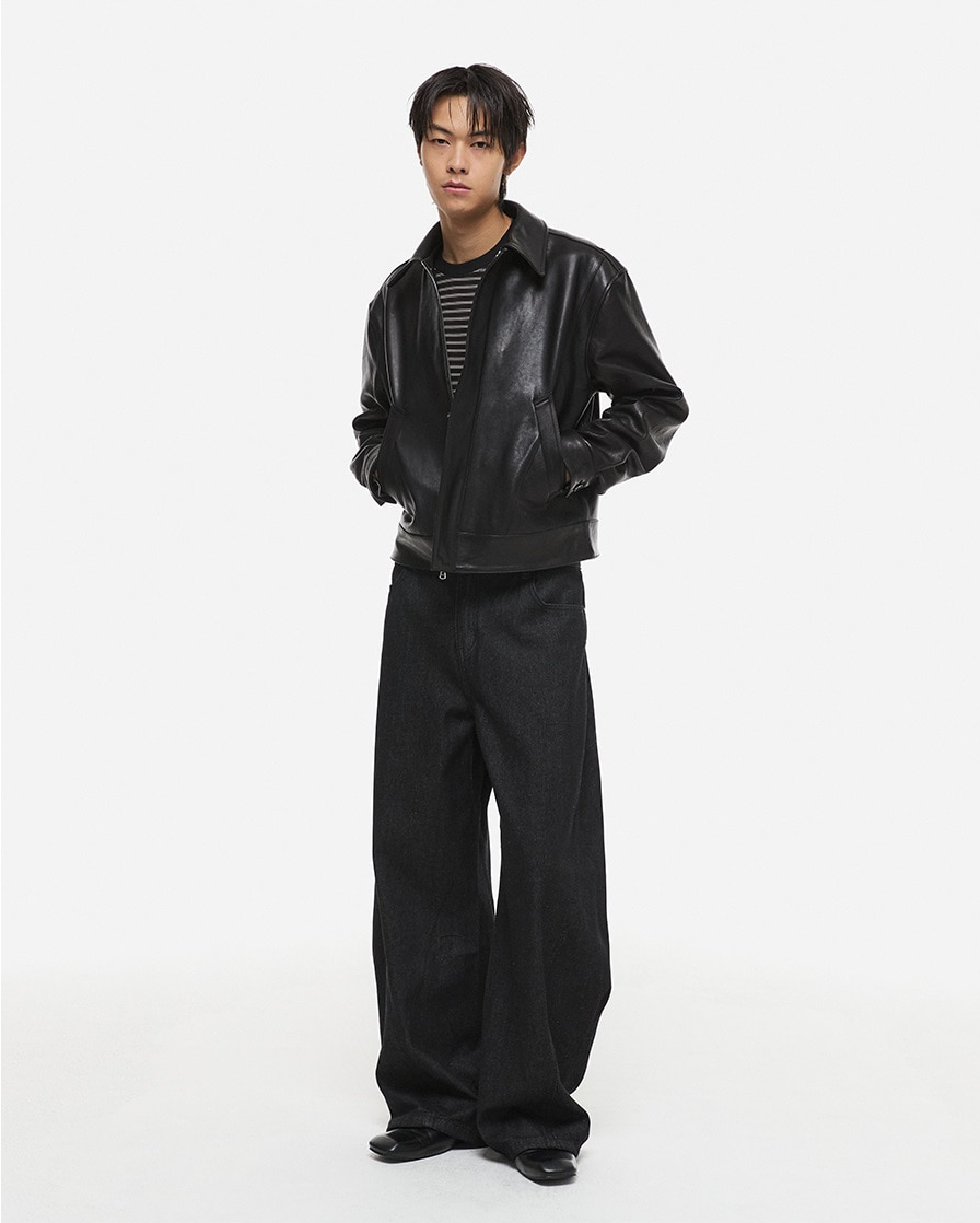 SIDE PLEAT RAW DENIM PANTS
