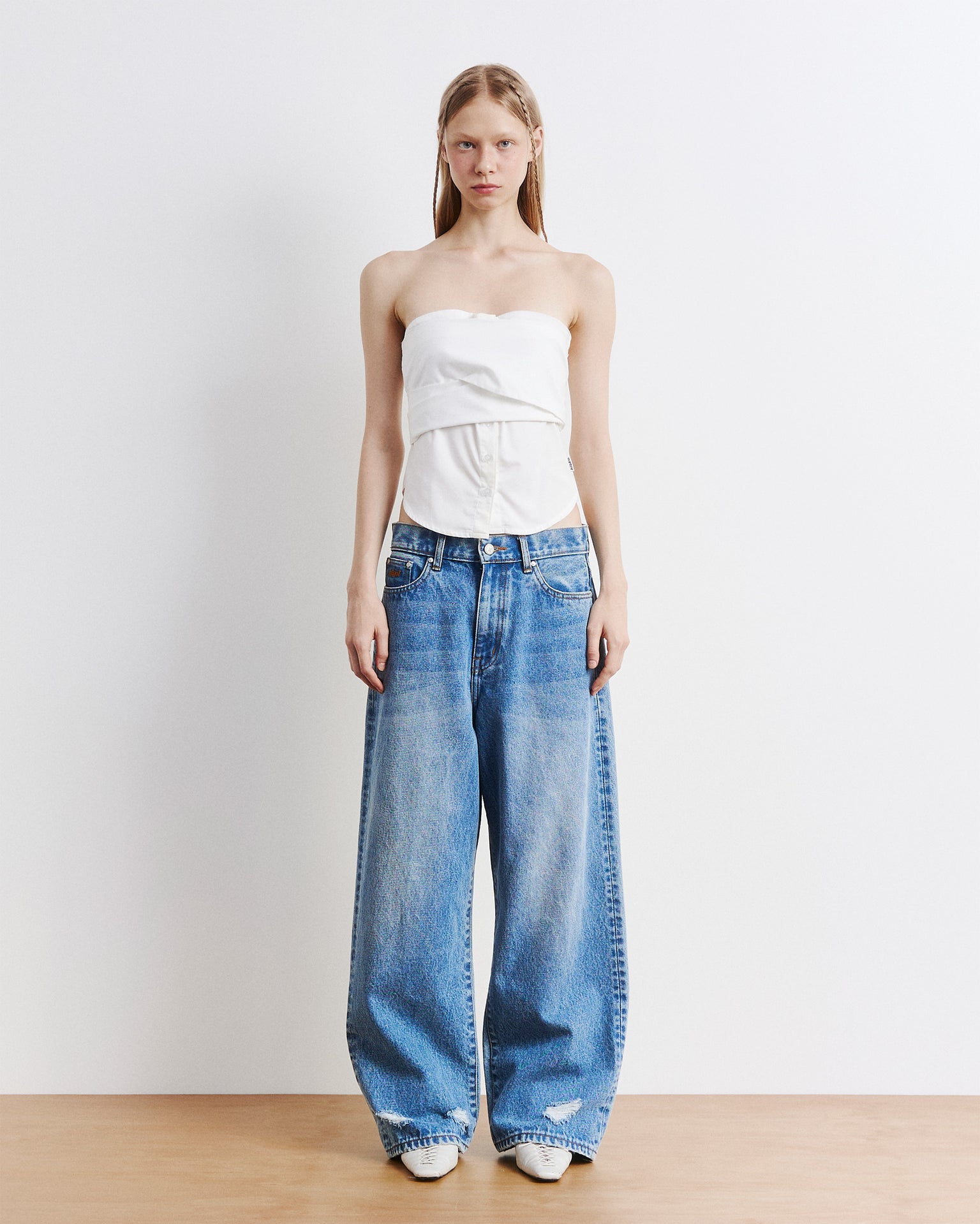 Cowl Button Long Sleeve White