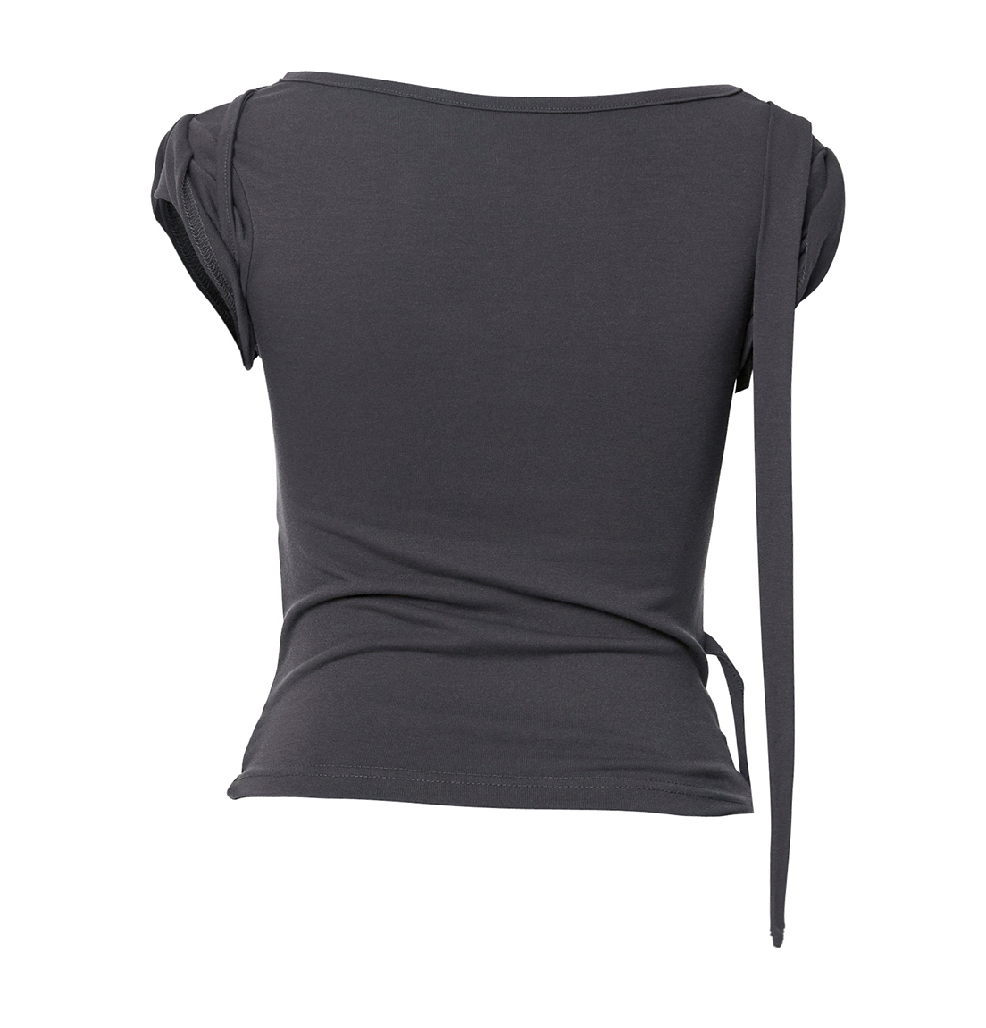 Asymmetrical Draped Strap Roll-Up T-Shirt (Charcoal)