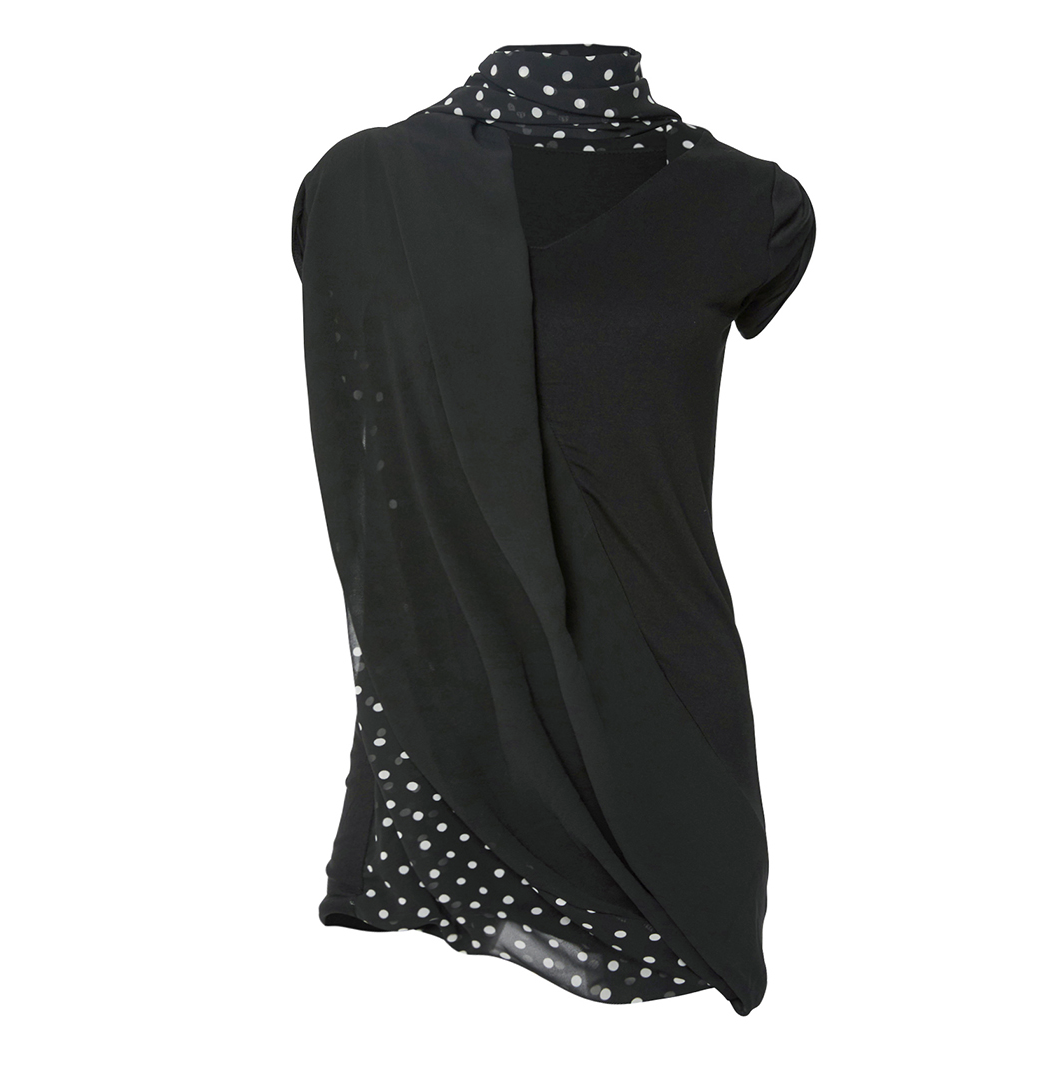 Layered Dot Scarf T-Shirt (Black)