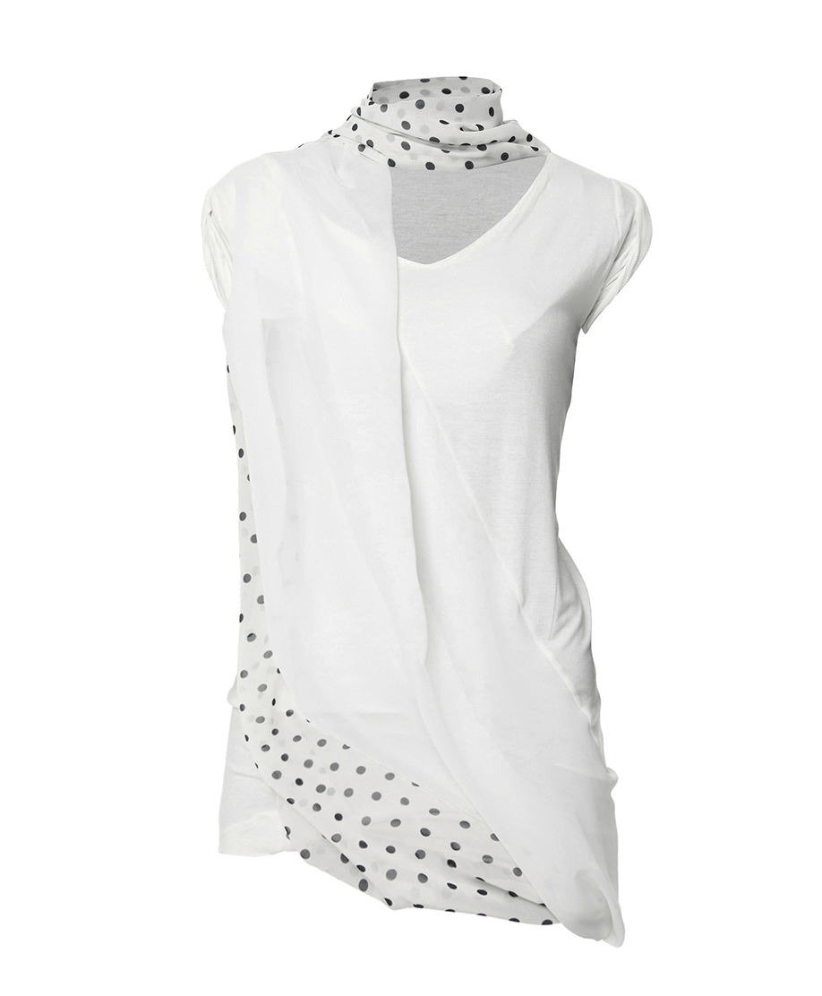 Layered Dot Scarf T-Shirt (White)