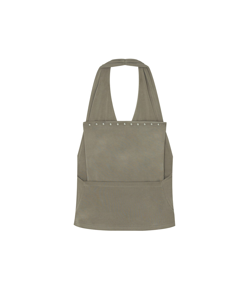 Stud Drape Halter Top (Warm Gray)