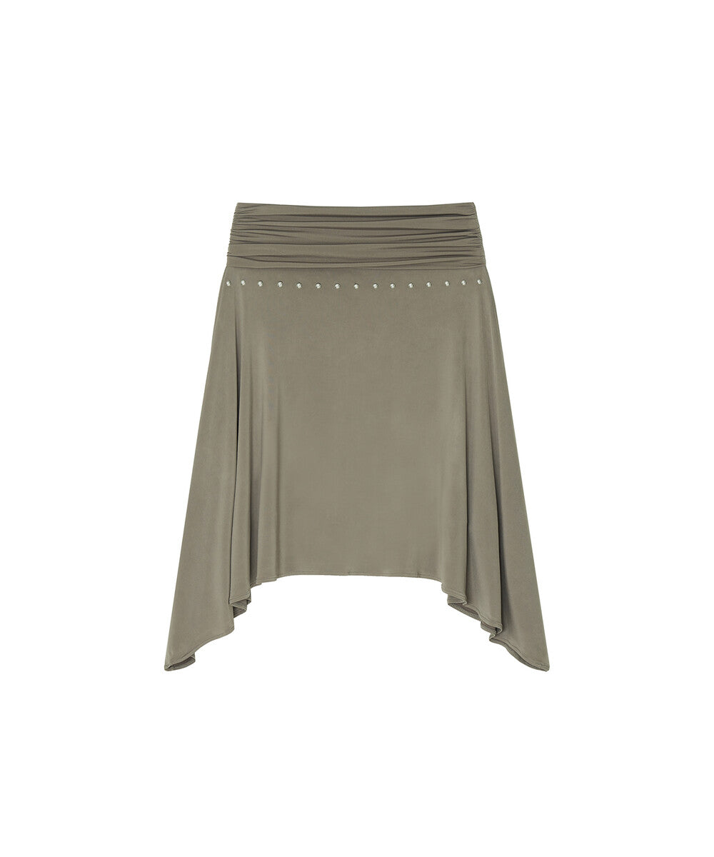 Stud Drape Flare Skirt (Warm Gray)
