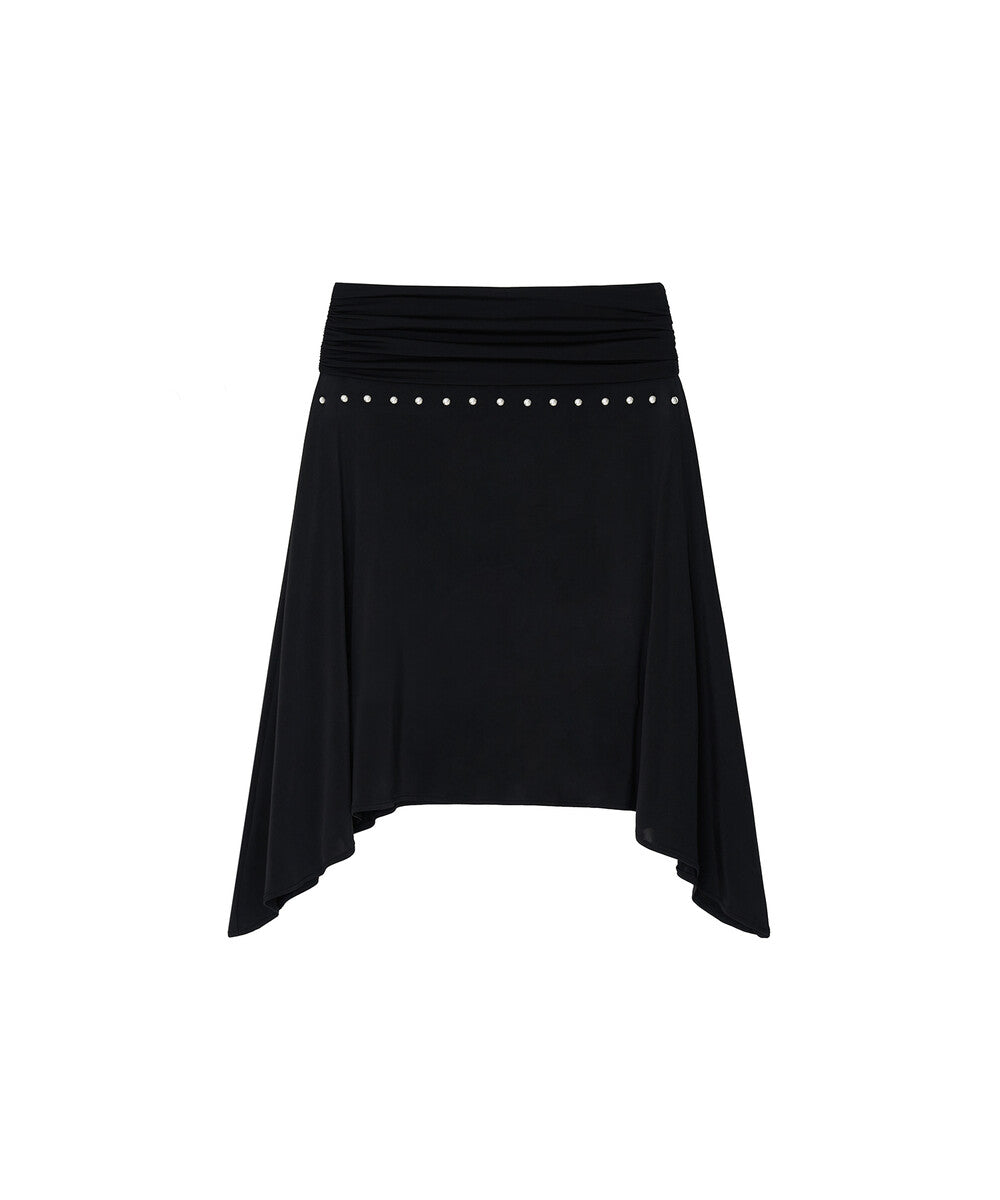Stud Drape Flare Skirt (Black)
