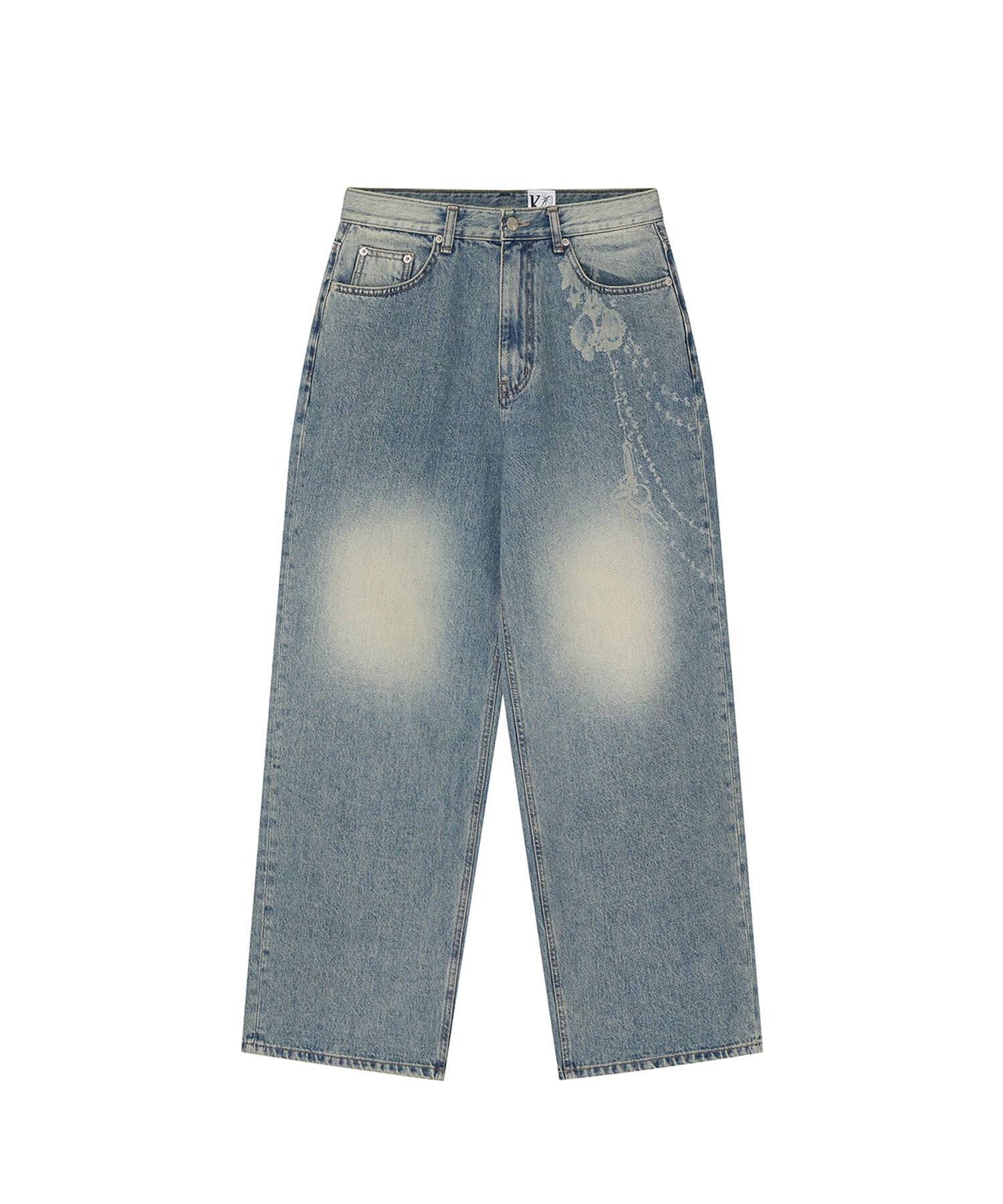 Chain Wide Denim Pants (Light Blue)
