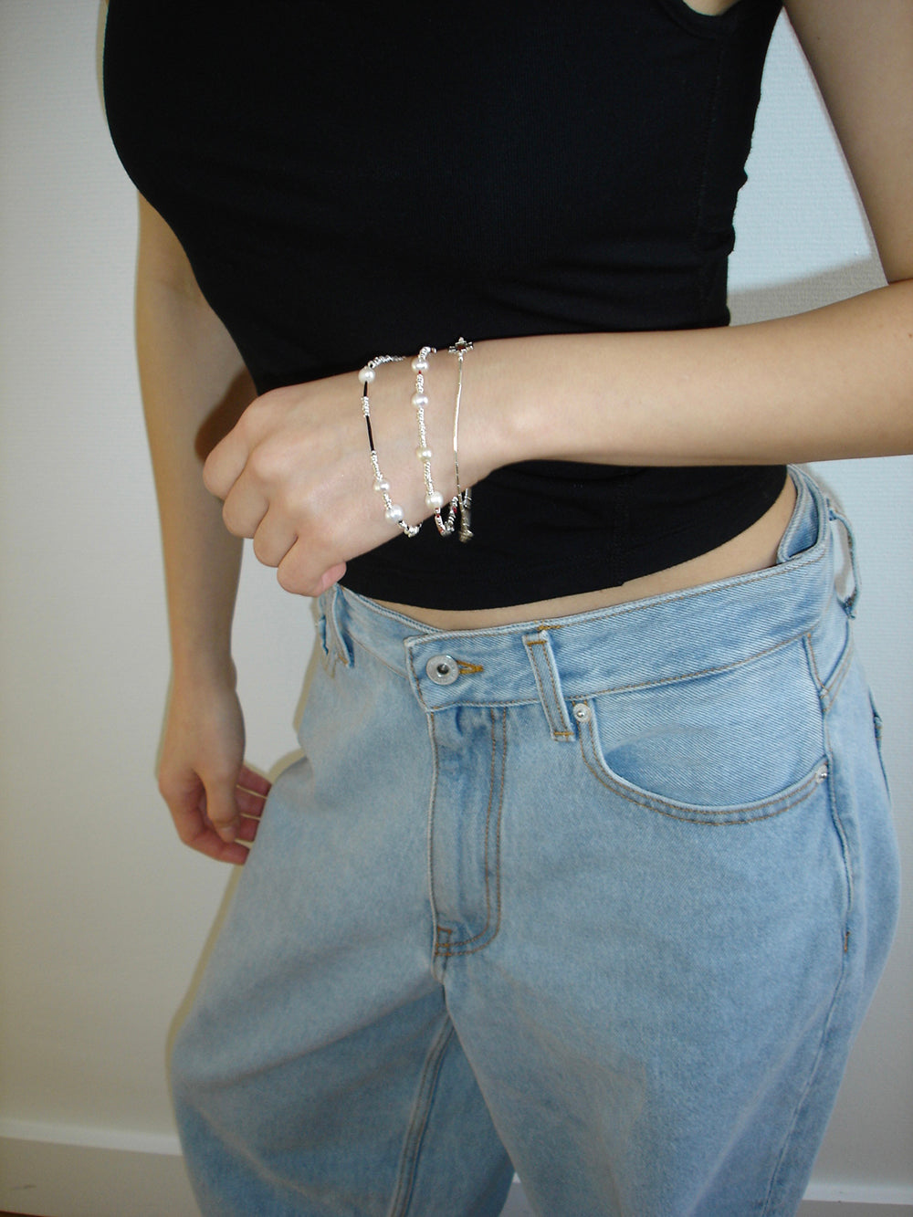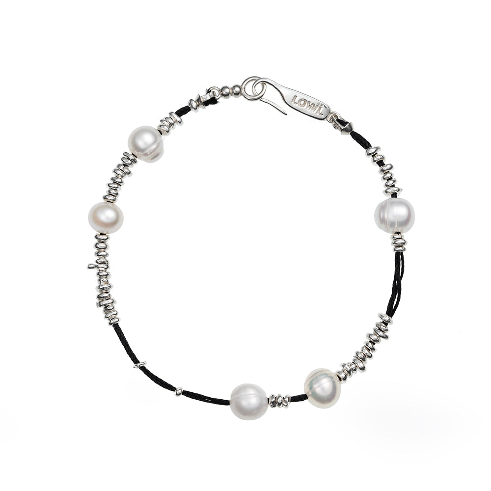 Black Thread Silver Pearl Bracelet