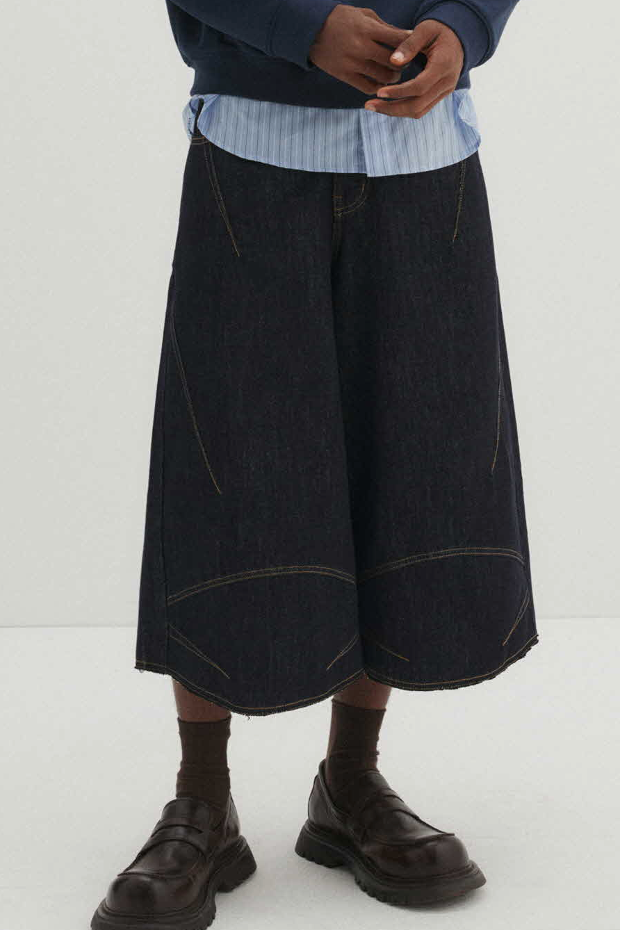 Multi Dart Bermuda Denim Pants (Indigo)