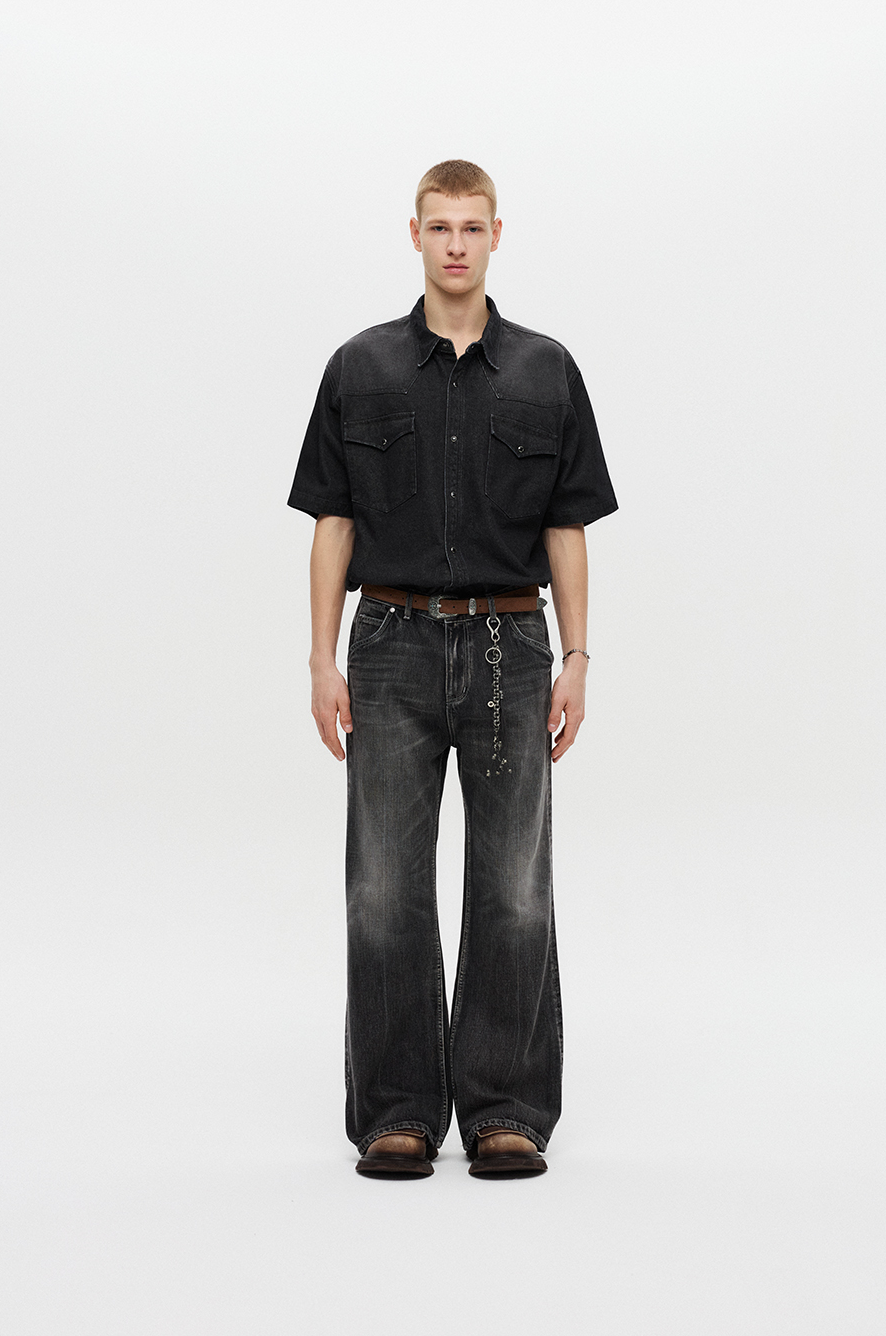 Western Flare Denim Pants (Black)