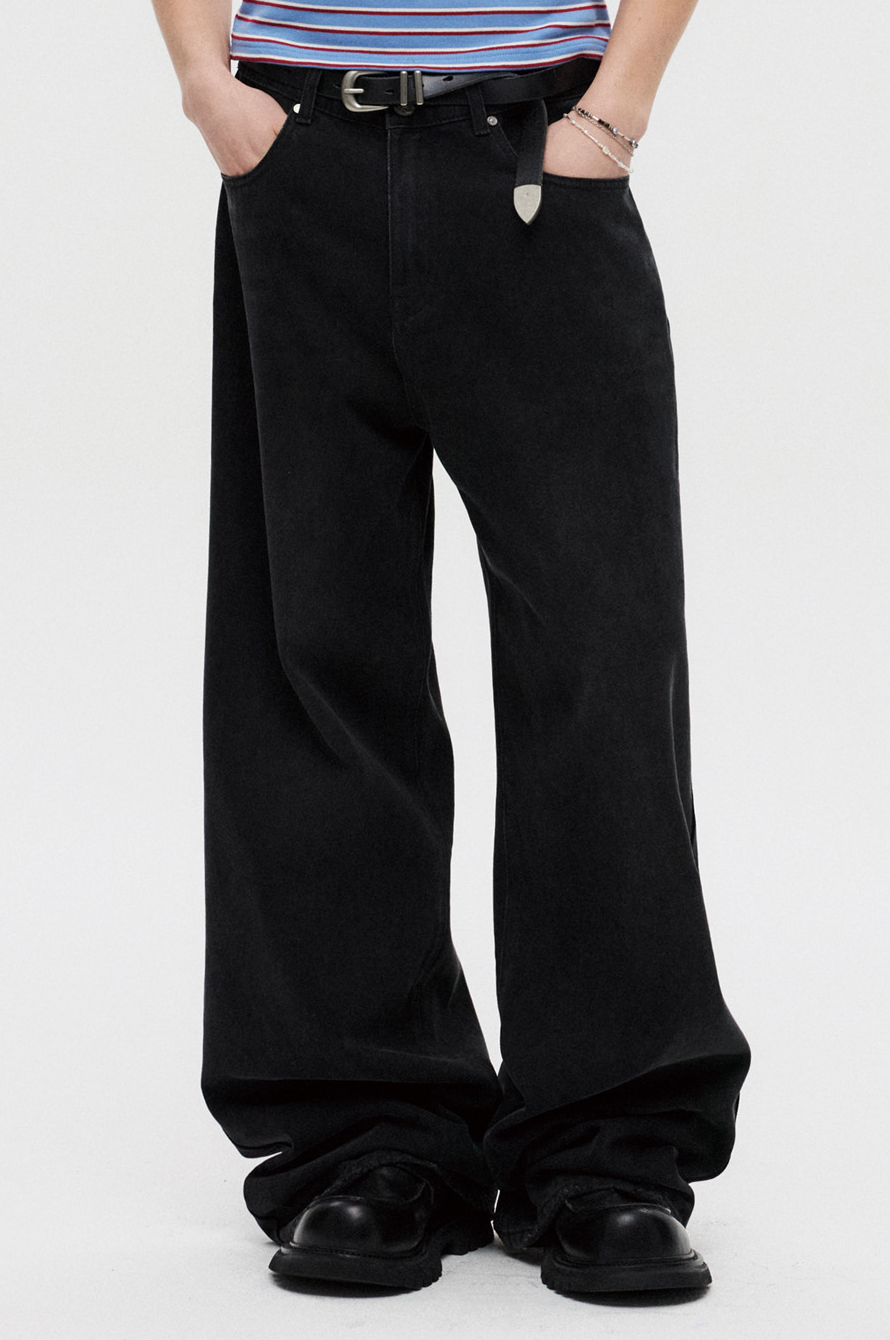 Signature Wide Denim Pants Washed (Black)