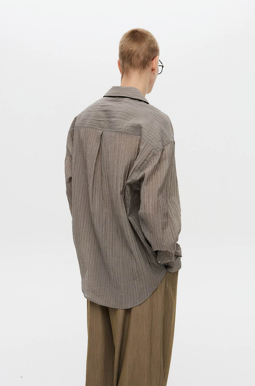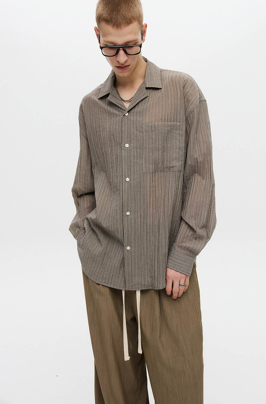 Striped Open Collar Shirt (Beige)