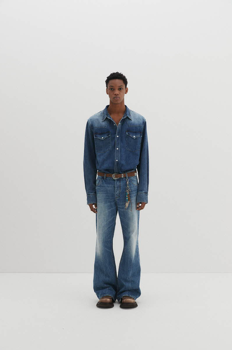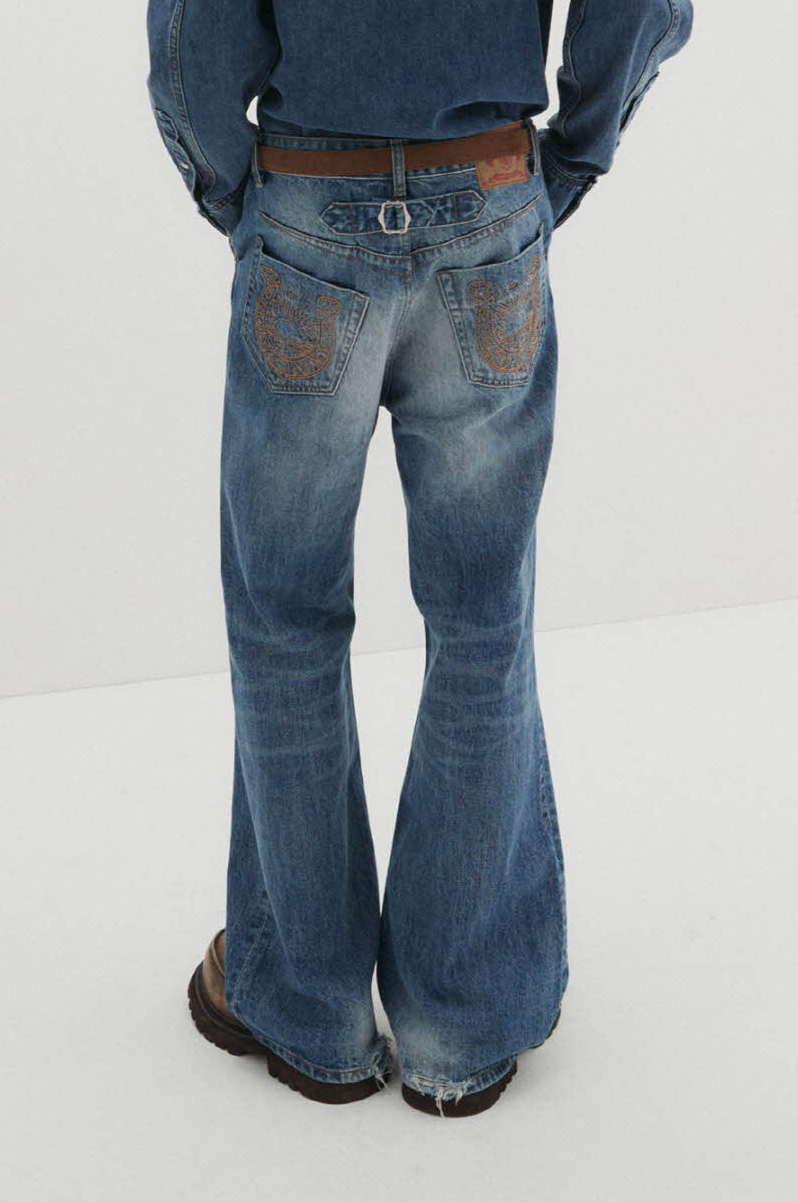 Western Flare Denim Pants (Blue)