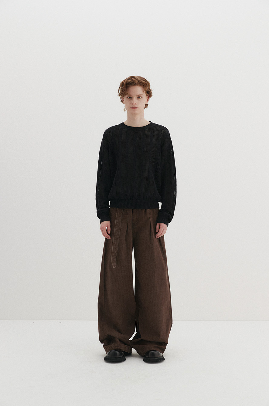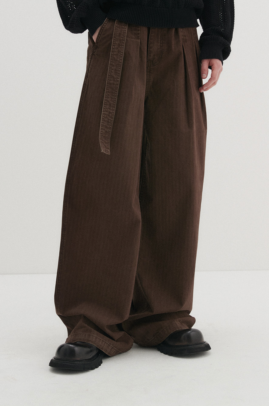 Belted Herringbone Pants (Brown)