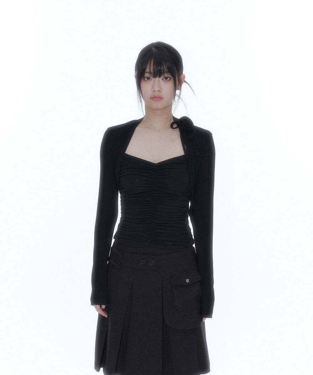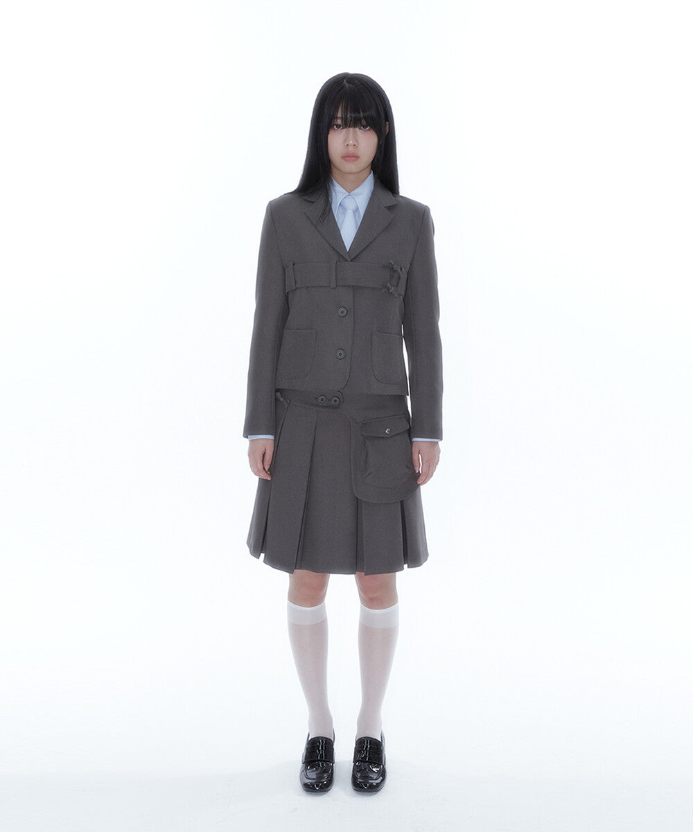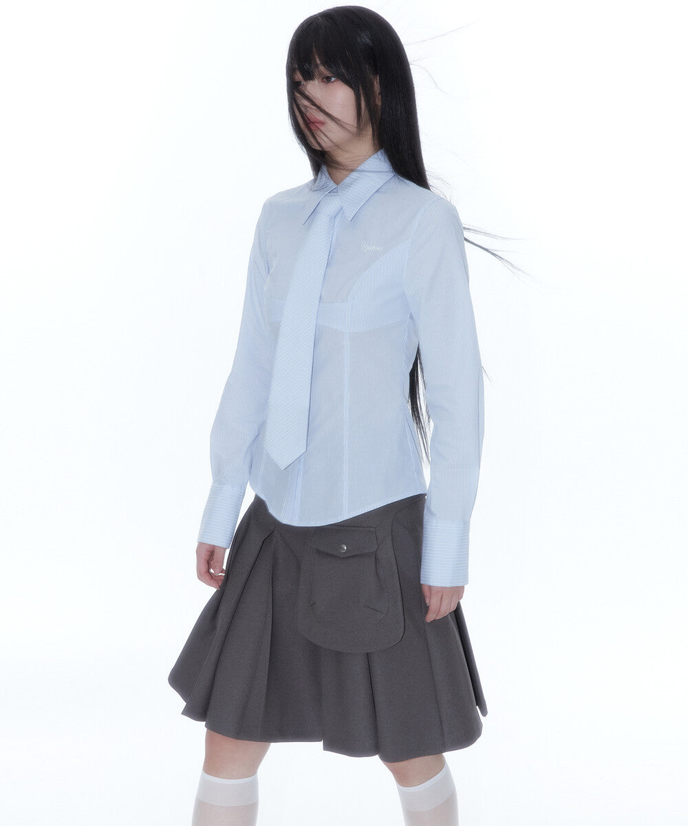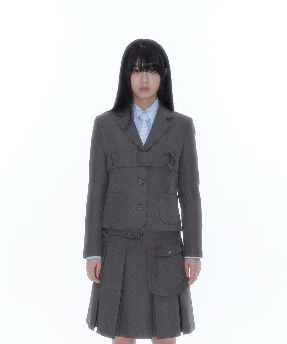 Ribbon Preppy Pleated Skirt (Charcoal)