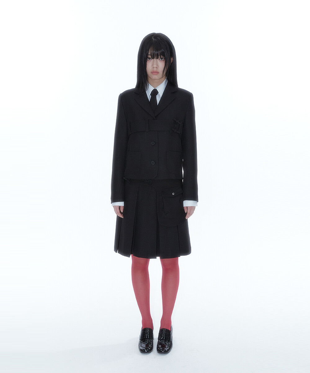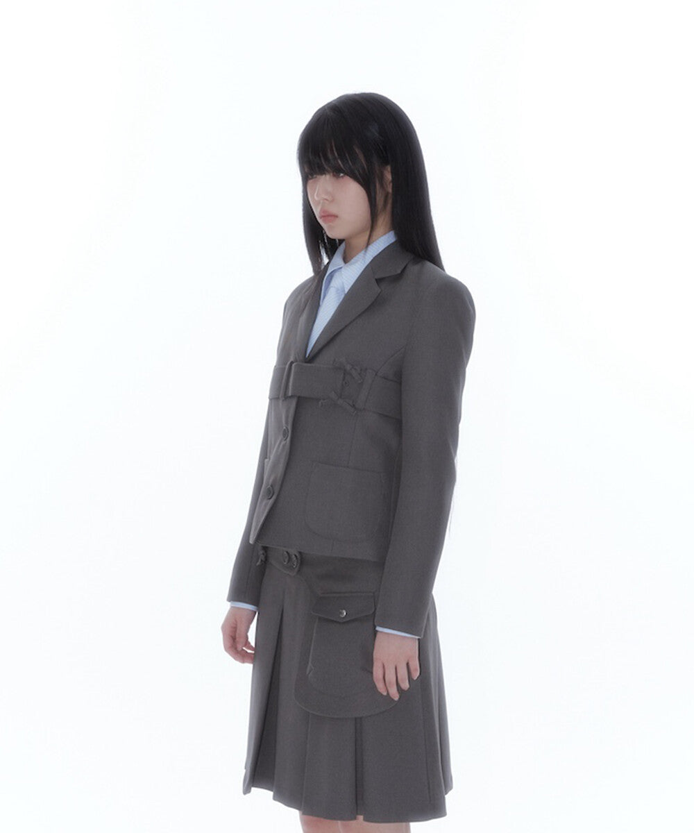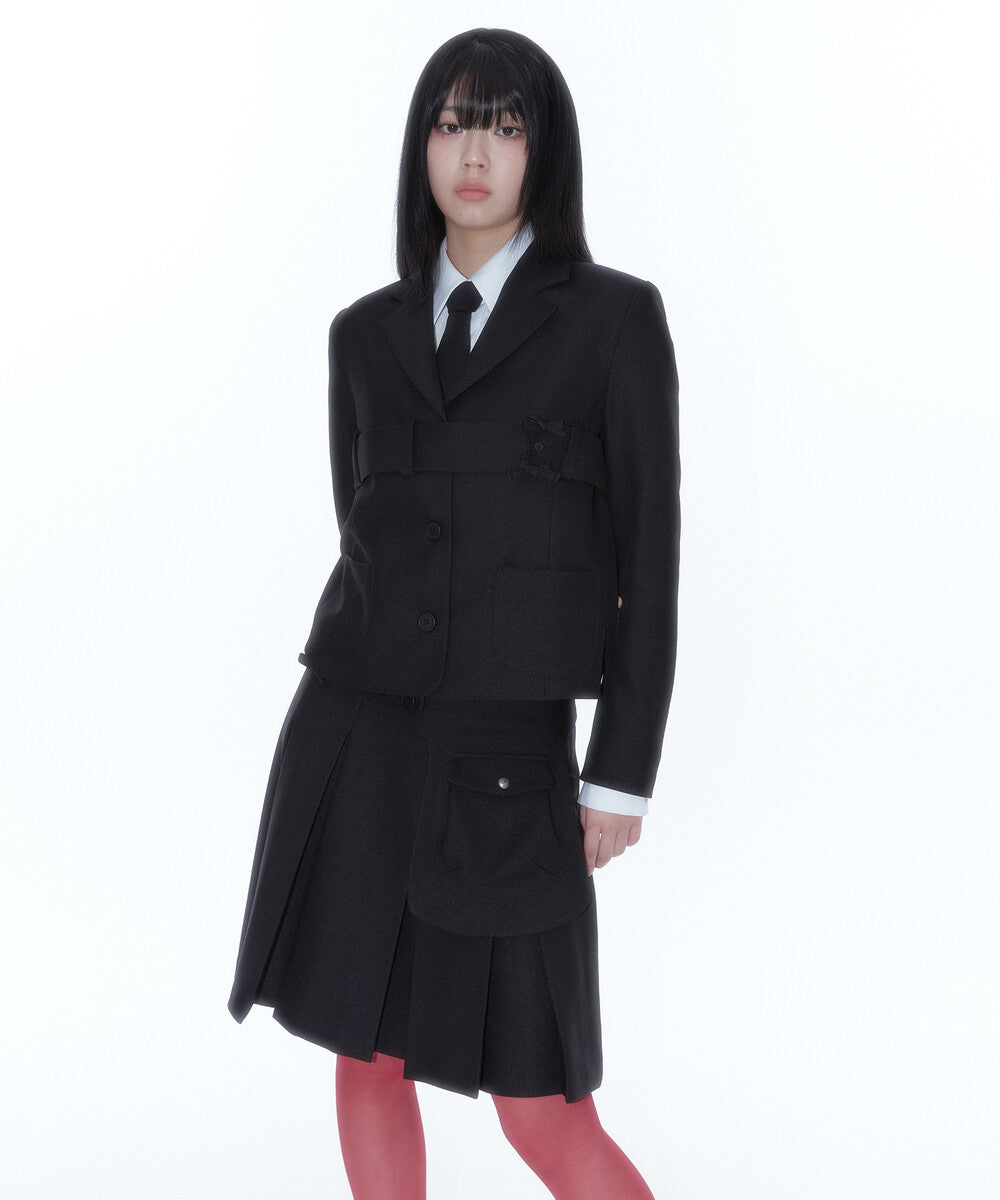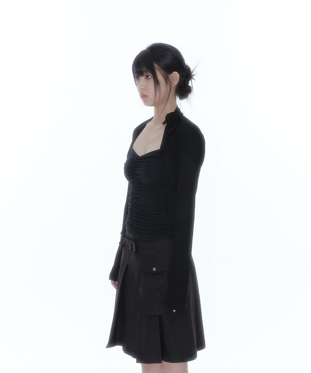 Ribbon Preppy Pleated Skirt (Charcoal)