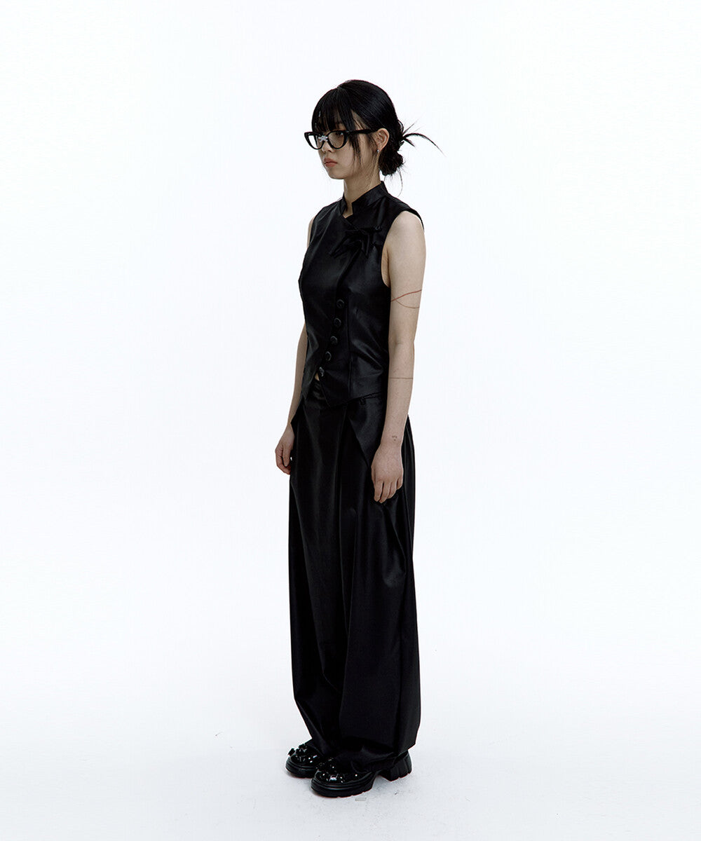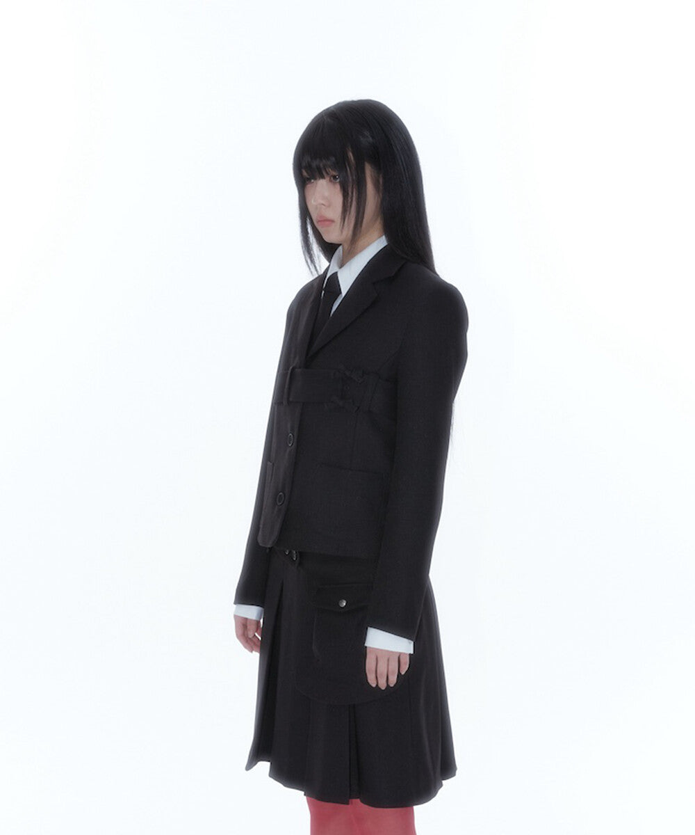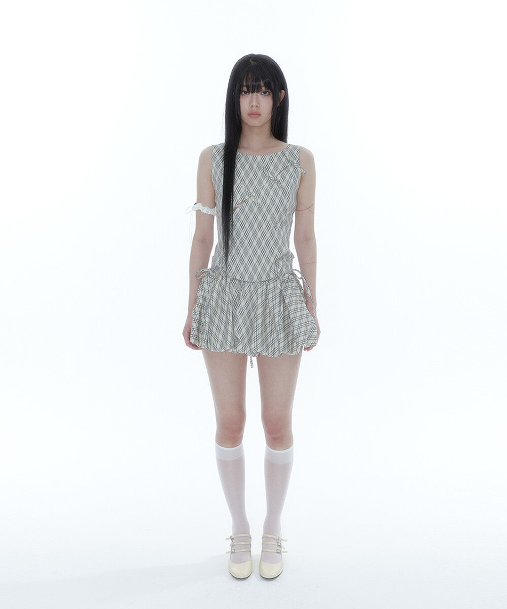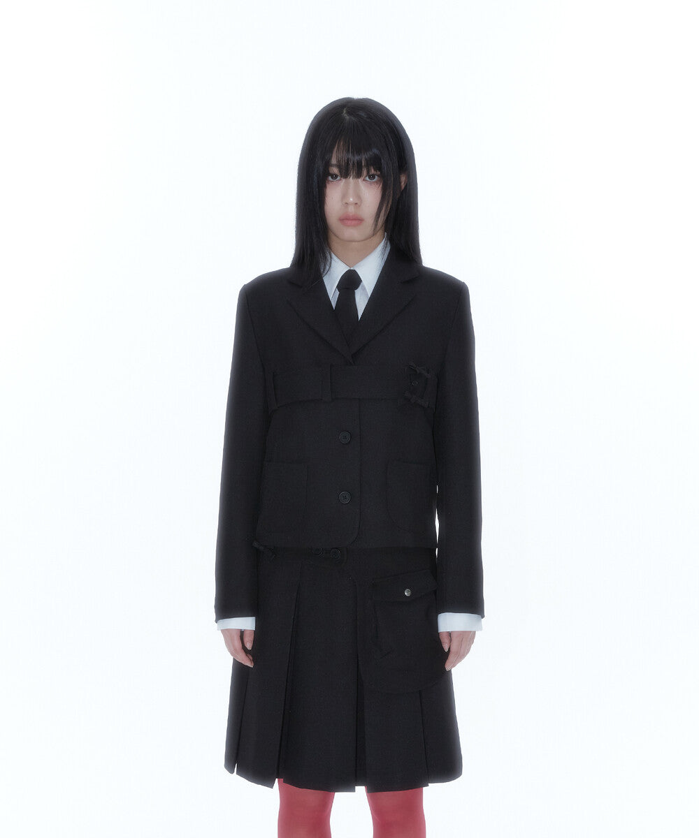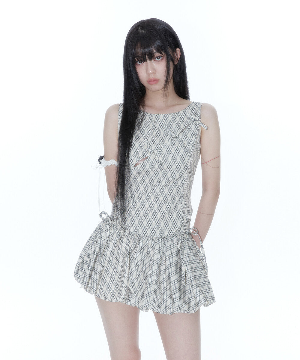 Ribbon Preppy Pleated Skirt (Charcoal)
