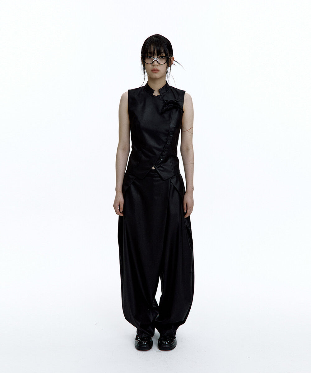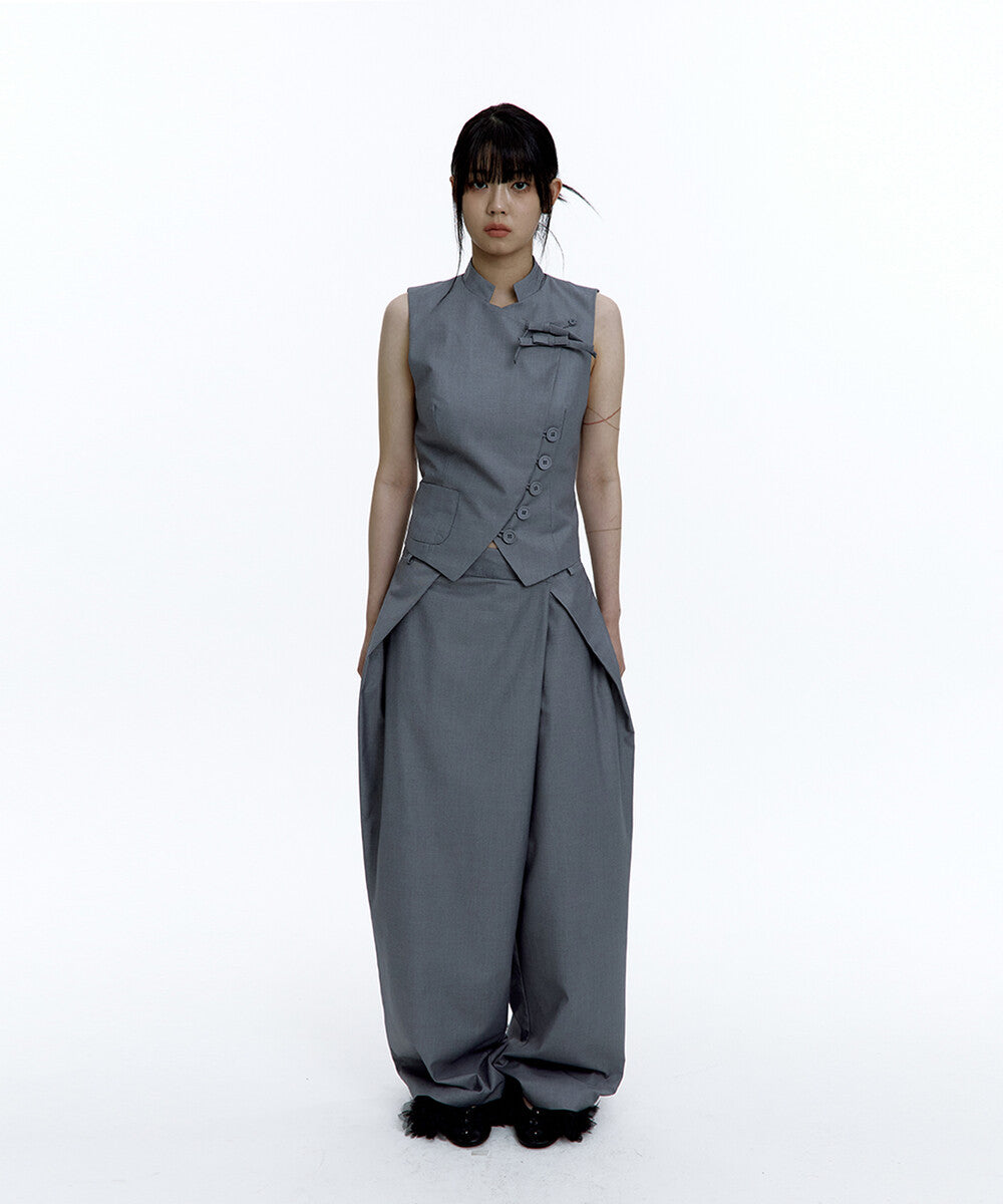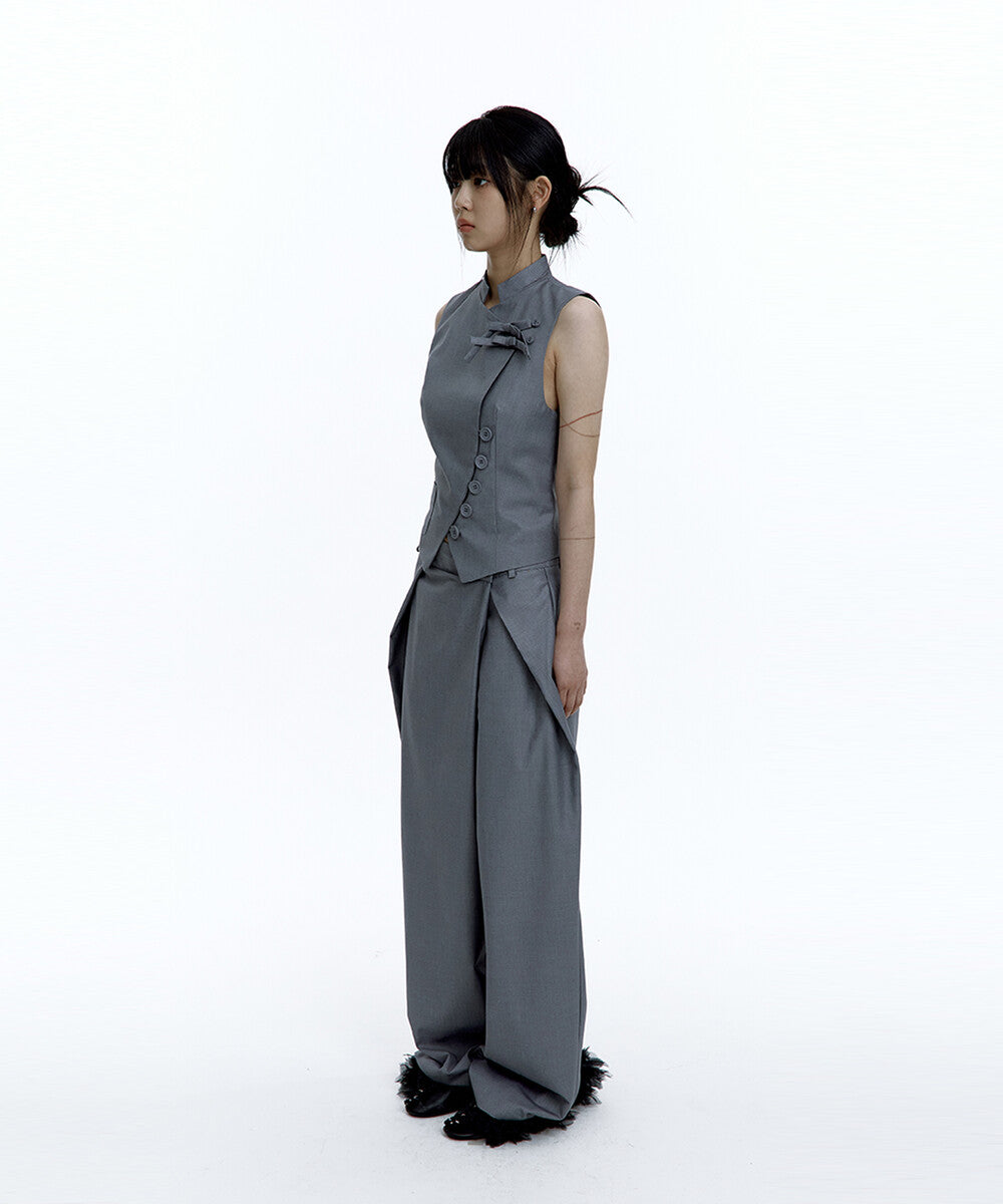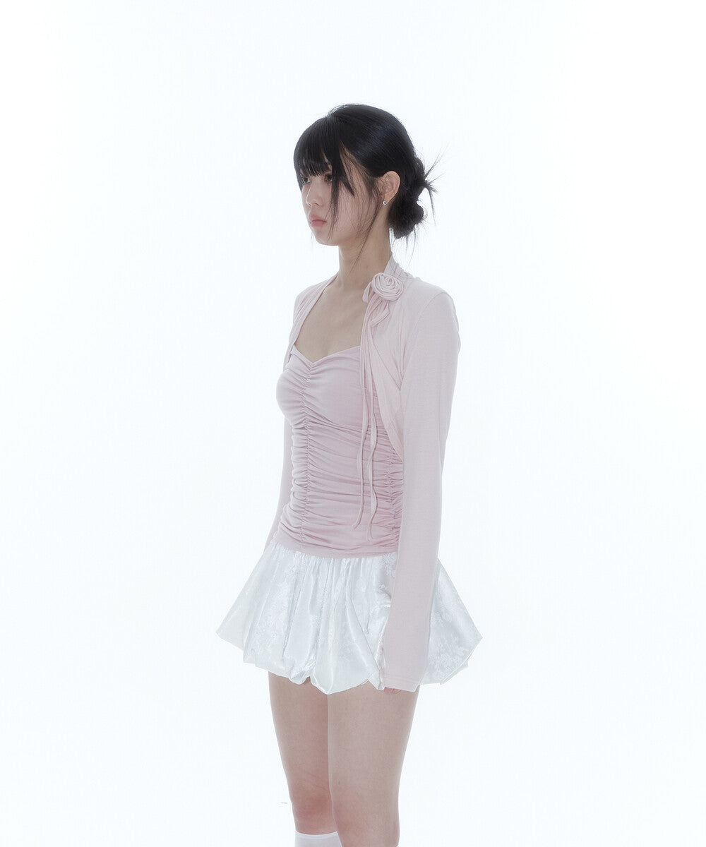 Ribbon Preppy Pleated Skirt (Charcoal)