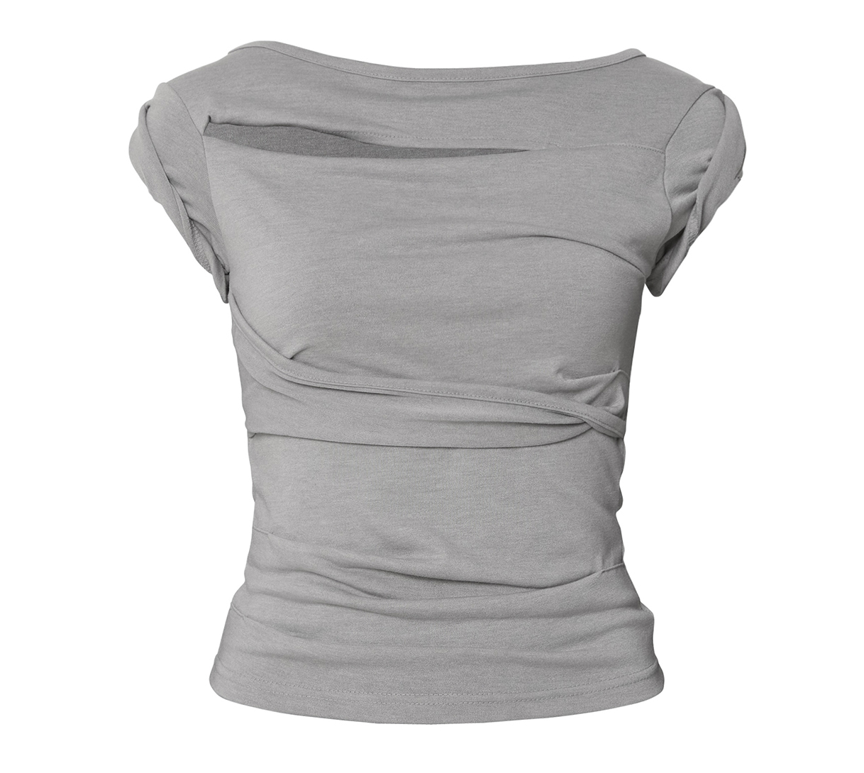 Asymmetrical Draped Roll-Up T-Shirt (Gray)
