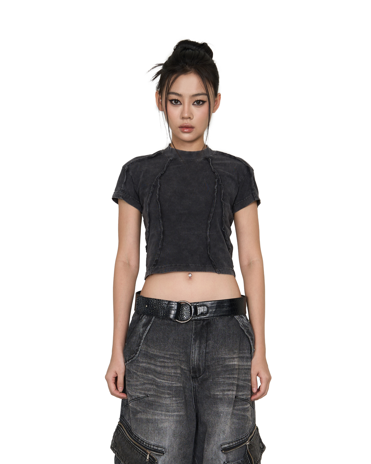 Panelled Baby Tee (Black)