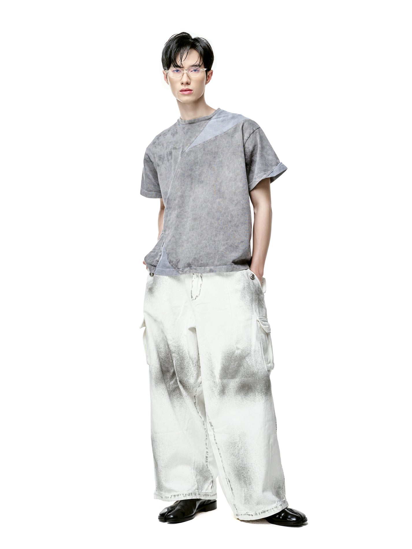 Grey Panelled Washed Cotton Jersey